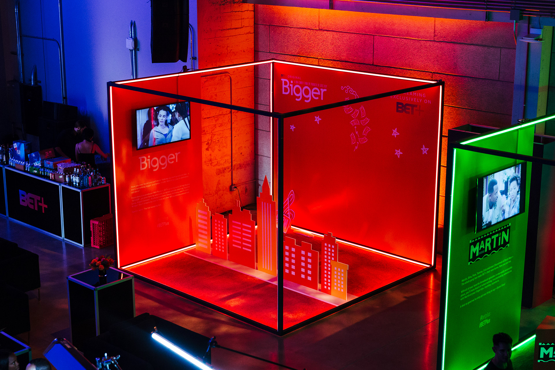 The focal points of BET+’s launch party were four unique vignettes celebrating noteworthy programming, all of which I was responsible for as the primary designer for the event. Its lifespan was relatively short; within two weeks, my team and I developed all spatial and graphic concepts and worked back simultaneously with BET and our fabricators to inject as much energy into the launch as possible.